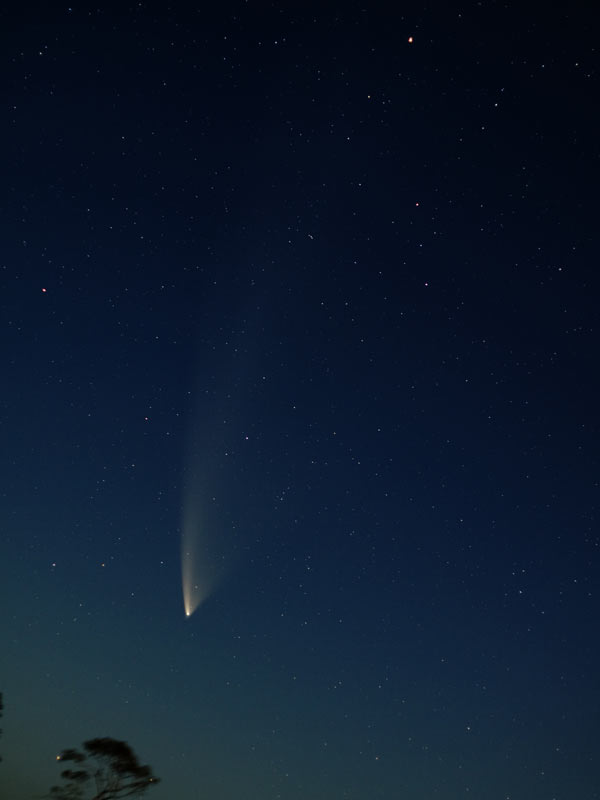 My photo of comet McNaught taken 23rd Jan 2007, Olympus E330, 60sec, ISO400, Zuiko 50mm f/1.4 lens at F/2 in rural region which allowed me longer exposure to better demonstrate the fantastic tail.