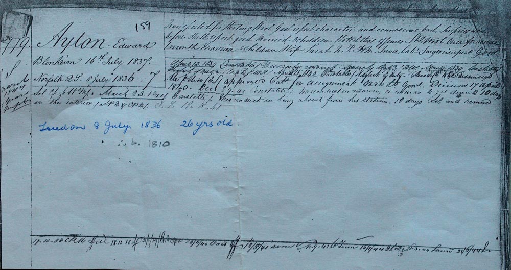 my great grandfather's uncle, Edward AYTON was convicted and transported to Australia on the Blenheim. This transportation resulted in the subsequent assisted immigration of his nephews, nieces and two daughters.