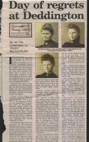 - Emma GUTTERIDGE (1865-) of Breadalbane, Tas
