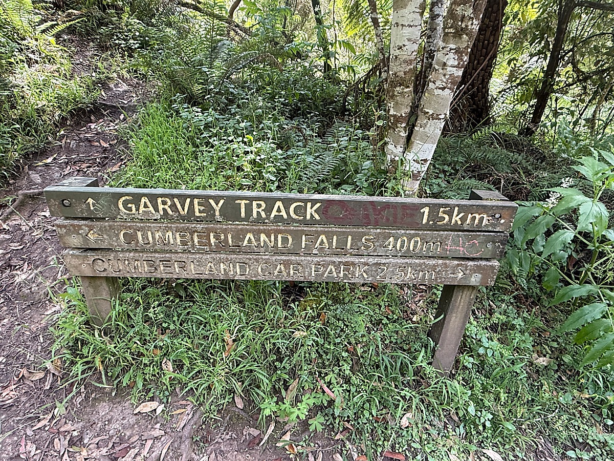 Sign post to the over grown narrow Garvey Track