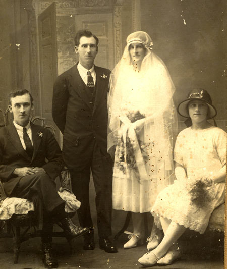 Harold WILSON, wife Margaret CRAWFORD, best man Alan WILSON and bridesmaid Florence CRAWFORD