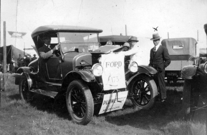 John C. Wilson (marked) checking out new cars at the Hamilton Show c.1928.