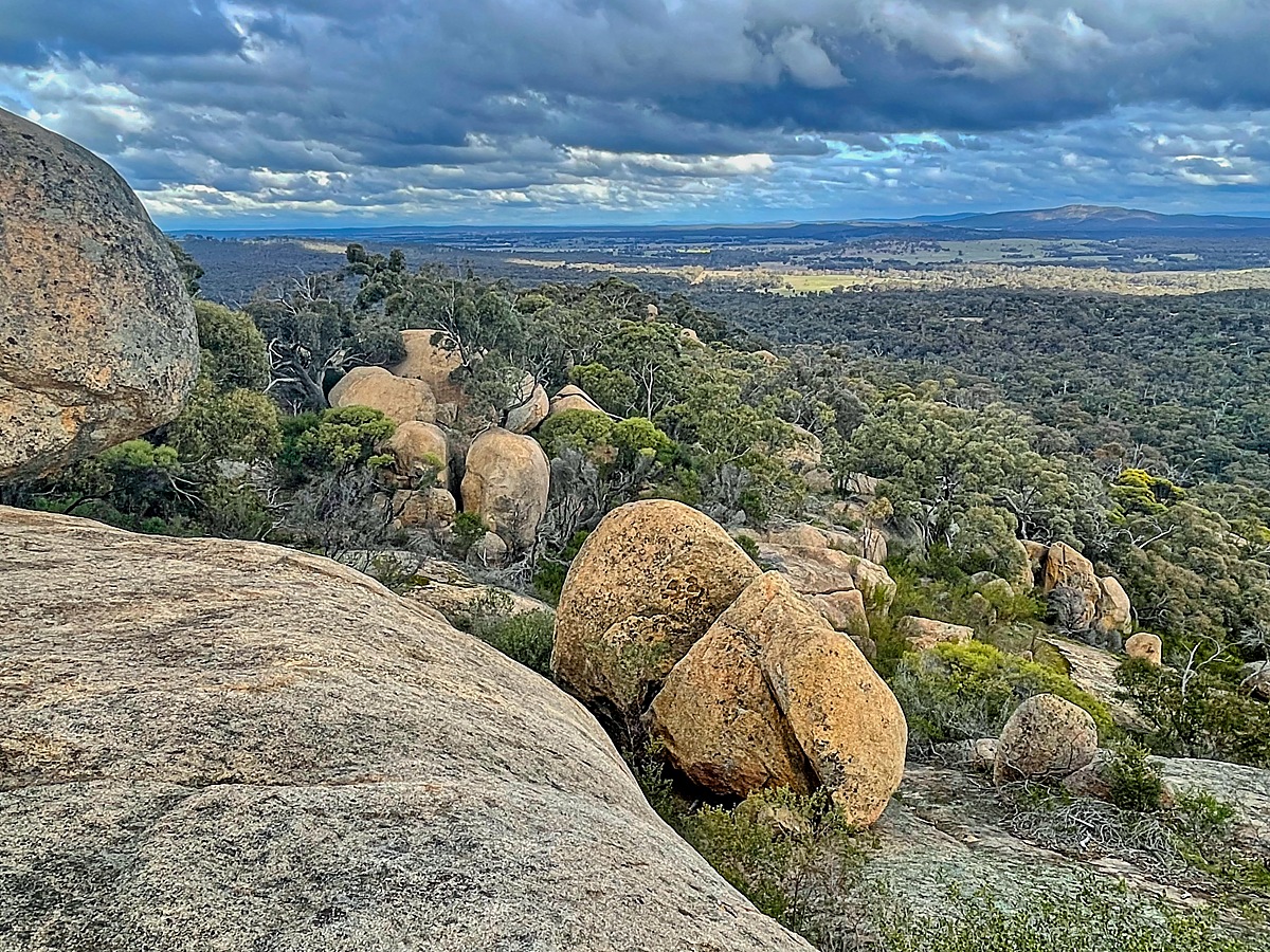 - if starting at the picnic ground, head towards sign saying McLeods Lookout, you will pass a nice unnamed large boulder to the right which gives views plus the 150m path to the Southern Lookout, you then continue up to the junction where the camp ground track joins, then continue to McLeods Lookout, then down near the half-way point it passes “large rock” then “rock pool” which is a small depression in the large rock filled with water and from there is a rather gentle flat walk through valley until you get to the picnic ground