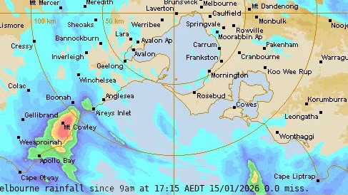 - the Otway Ranges create a rain shadow effect for the area to its north-east in particular, including the western suburbs of Melbourne (which also are in a rain shadow from the NW courtesy of the Macedon Ranges)
