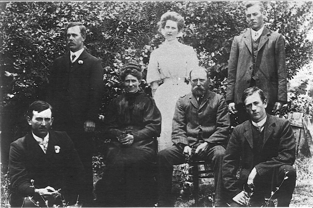 John James BLACK at the 25th Wedding Anniversary of his parents James McAuley Black and Ellenora Black in 1907 Back Row (L→R): John Black (married Amelia Cain), Ellenora Black, James Black Front Row: Robert Black, Ellenora Black, James McAuley Black, Thomas Black