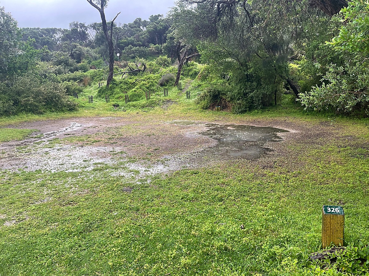 - HOWEVER, most sites the water depth is less than 4“ and the water generally drains away within hours after the rain stops so as long as your tent has a waterproof base which is high enough to prevent water getting into your tent, you should be OK (a budget tent will probably NOT be OK)