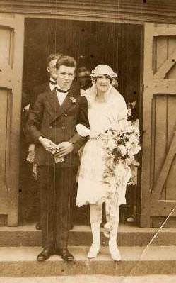 Jack Glare OGLE's wedding in 1929 to wife Irene May ELLIOTT with his father John Henry OGLE on the left (above)